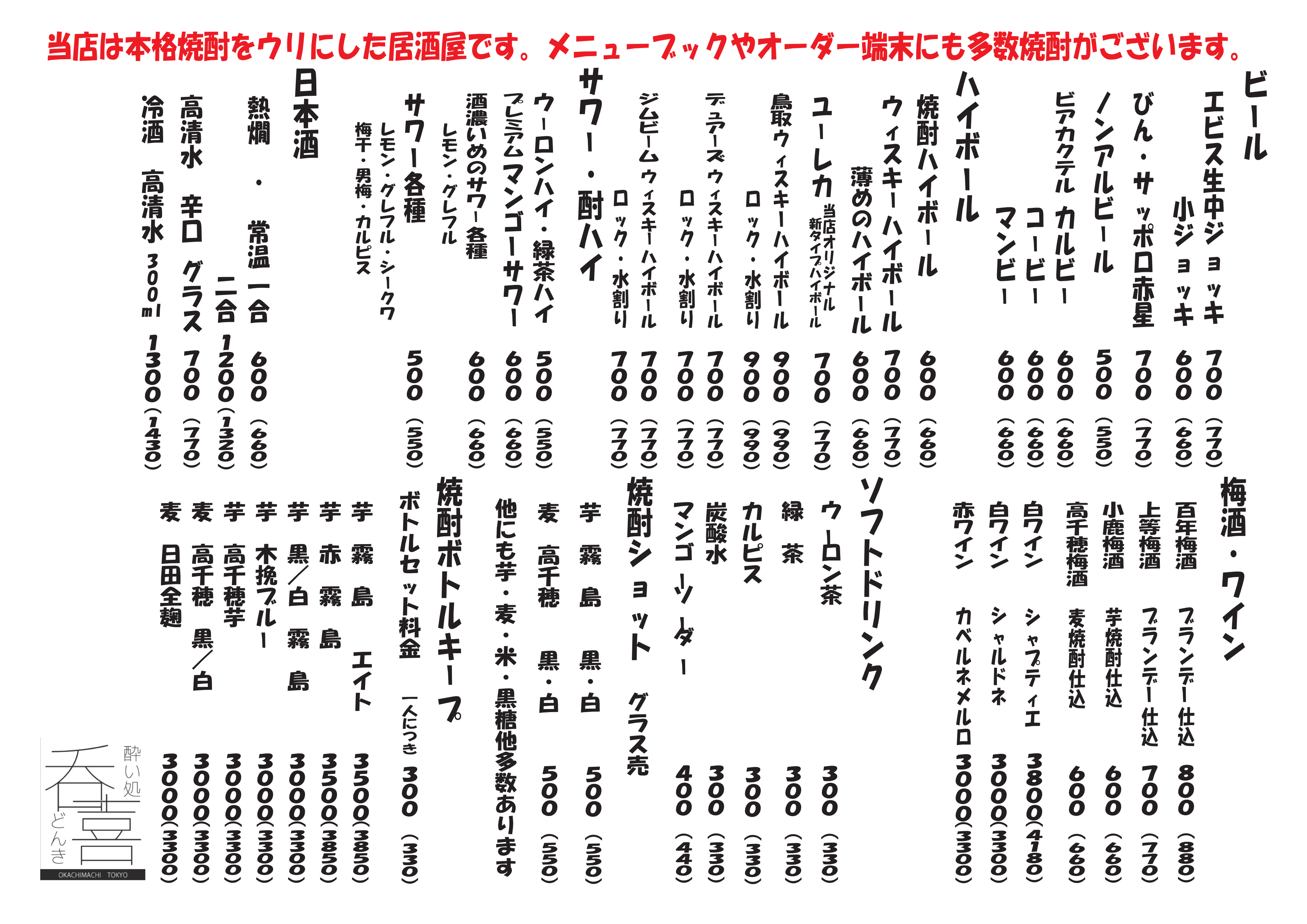 | 梅酒小鹿 | 660 | 呑喜らしく芋焼酎で仕込んだ梅酒です |